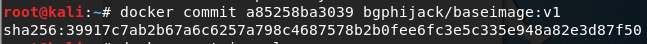 Following this step, I saved the image of this container so that I do not have to redo these steps for the other containers. To do this, I exited the container session by typing exit in the command line and saved the image by typing docker commit <container ID> bgphijack/baseimage:v1