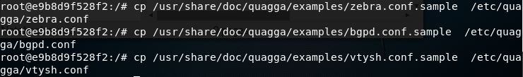 Before running the software Quagga, it required me to set up the config files. In order to do this, I copied over the quagga supplied example config files.