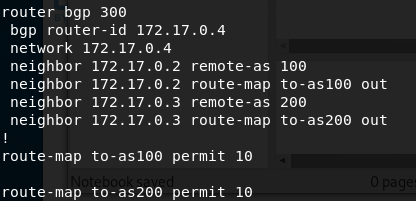 The bgpd.conf files for the other routers requires the same steps, but entails a few minor changes– switching out the IP’s and ASN’s.